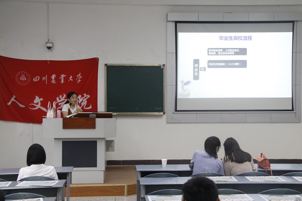 大会分为毕业生后期准备和文明离校教育两大内容进行开展。在毕业生后期准备这一板块,陈俊霖对毕业生离校流程以及毕业需要的相关证明、注意事项进行了详细介绍。在文明离校教育这一内容中,陈俊霖强调员工要“珍惜员工荣誉,增强文明意识”,并用生动形象的例子向在场毕业生说明文明离校的重要性。最后她还表示毕业生要珍爱公司的一切,还母校一份深情,用实际行动为母校尽自己最后一份力。在现场提问环节,毕业班级的同学对不清楚的相关事宜进行了提问,陈俊霖耐心解答,现场气氛活跃。