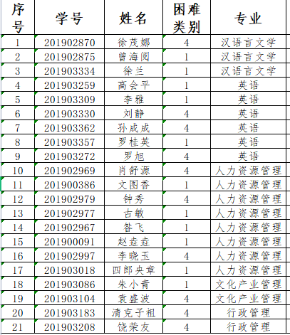 三、依照相应困难程度现筛选21位就业帮扶名单公示如下: