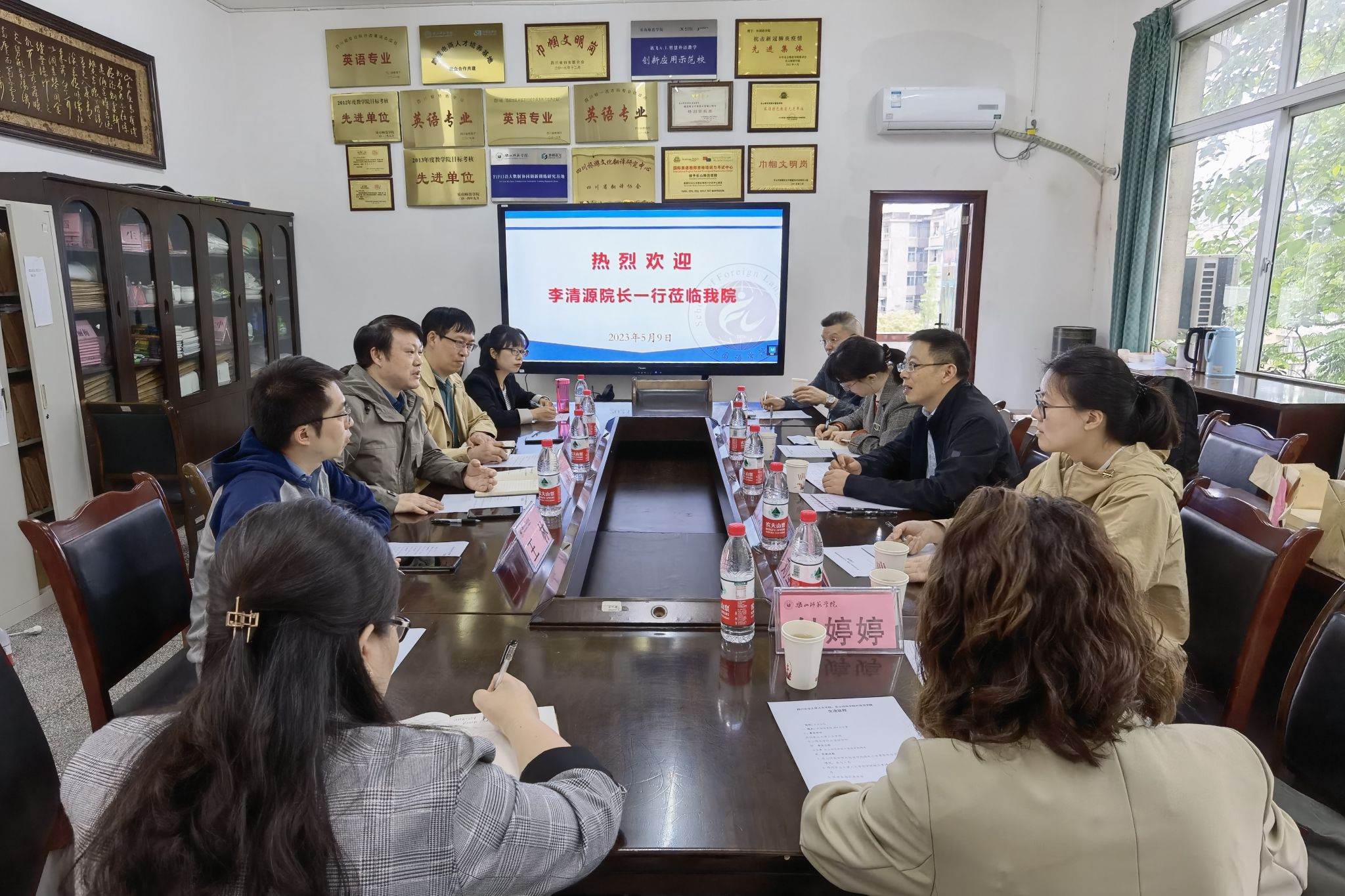5月10日下午,太阳成集团tyc234cc经理、翻译硕士学科点负责人李清源,英语系主任丁芳芳、副主任朱雅冬,英语专业负责人高怀勇等一行6人赴乐山师范公司外国语公司开展英语专业建设调研及翻译硕士学科点招生宣传等相关工作。